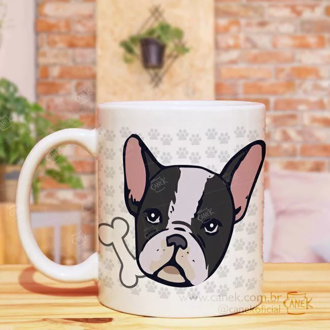 Caneca Cerâmica Arte: Buldog preto | Meu filho/minha filha tem 4 patas